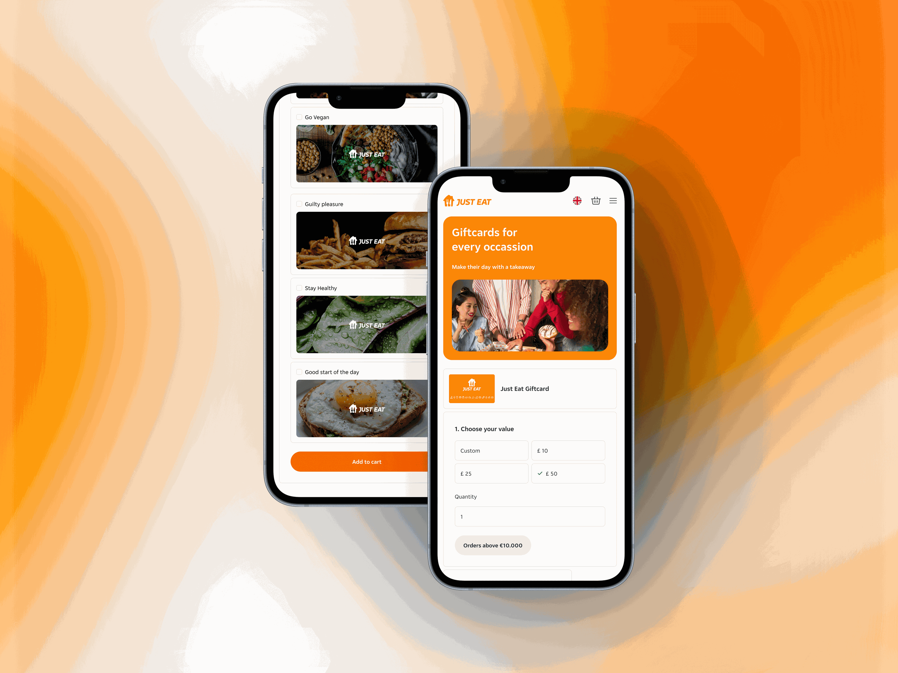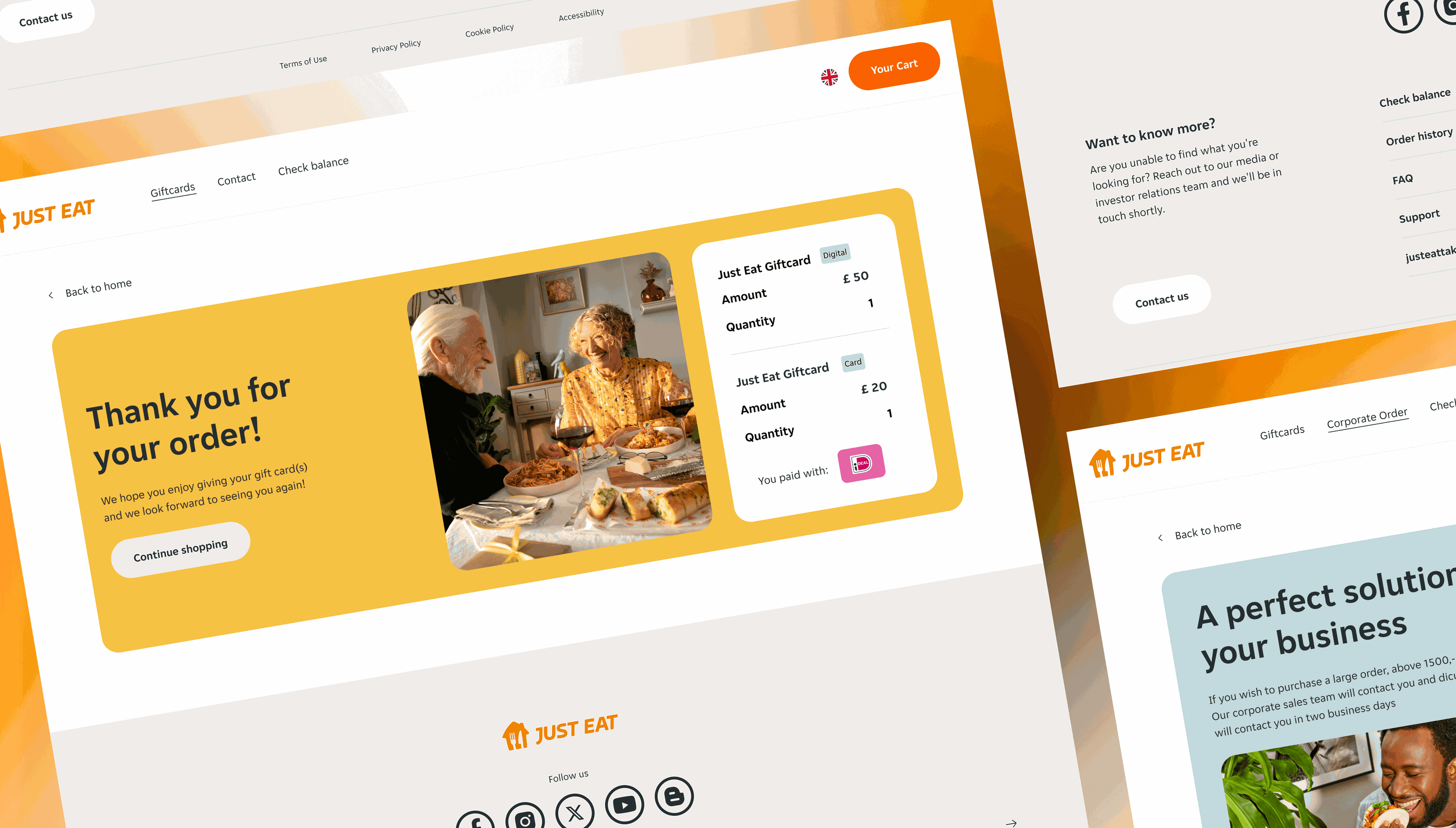 Al met al zorgt het design van de cadeaukaartenpagina ervoor dat gebruikers een naadloze en plezierige ervaring hebben bij het vinden en kopen van cadeaukaarten op justeattakeaway.com.