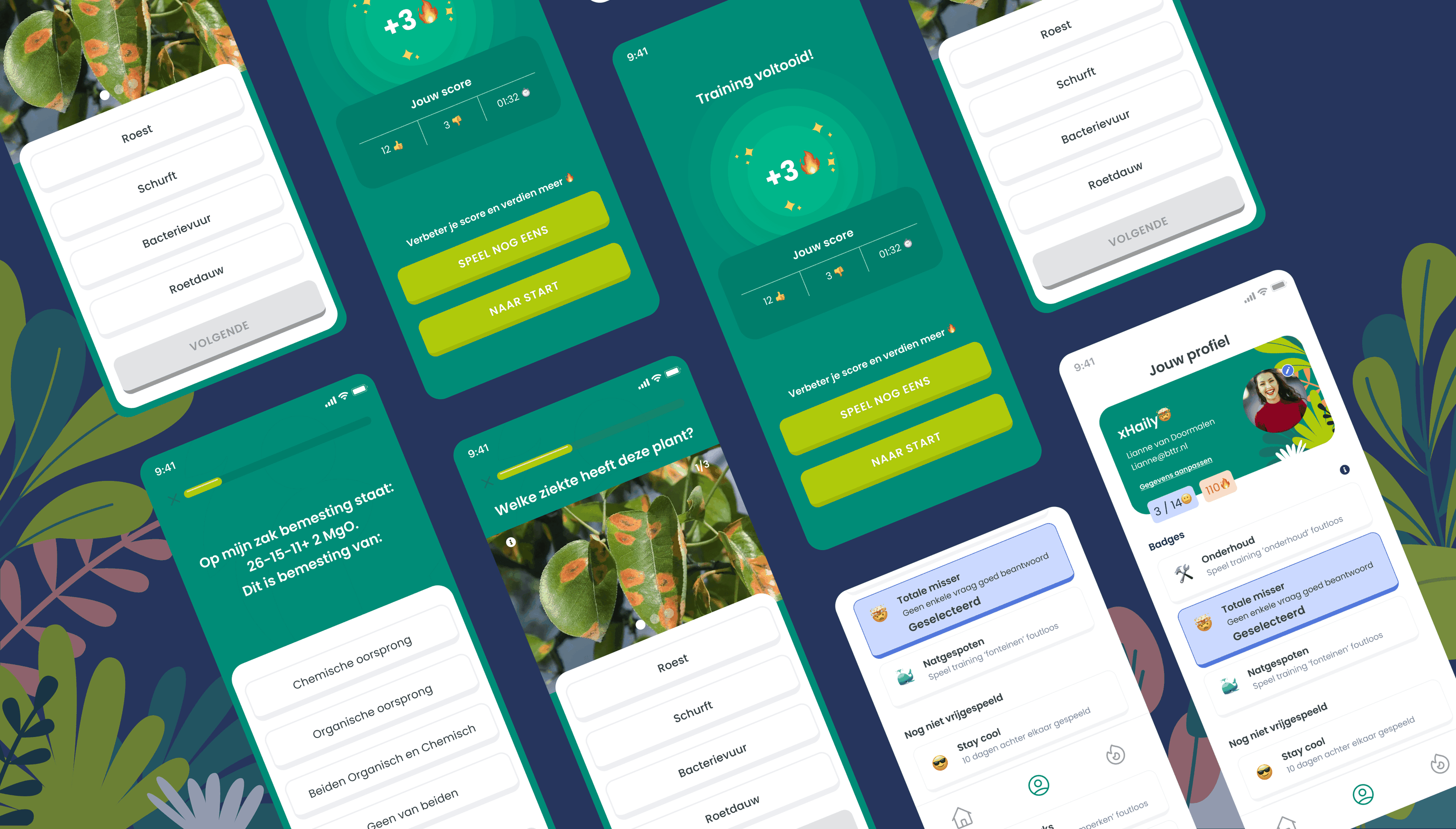 Bij BTTR streven we ernaar om ideeën te vertalen naar gebruikerservaringen die perfect aansluiten bij de strategie. De Plantenkennistrainer is een heldere en toegankelijke leeromgeving, ontworpen om intuïtief te werken. De overvloed aan gegevens, zoals kennis-elementen, is zorgvuldig gecategoriseerd in vragen over diverse onderwerpen, waaronder plantensoorten, bodemkwaliteit, veiligheid tijdens het werk en verzorging.