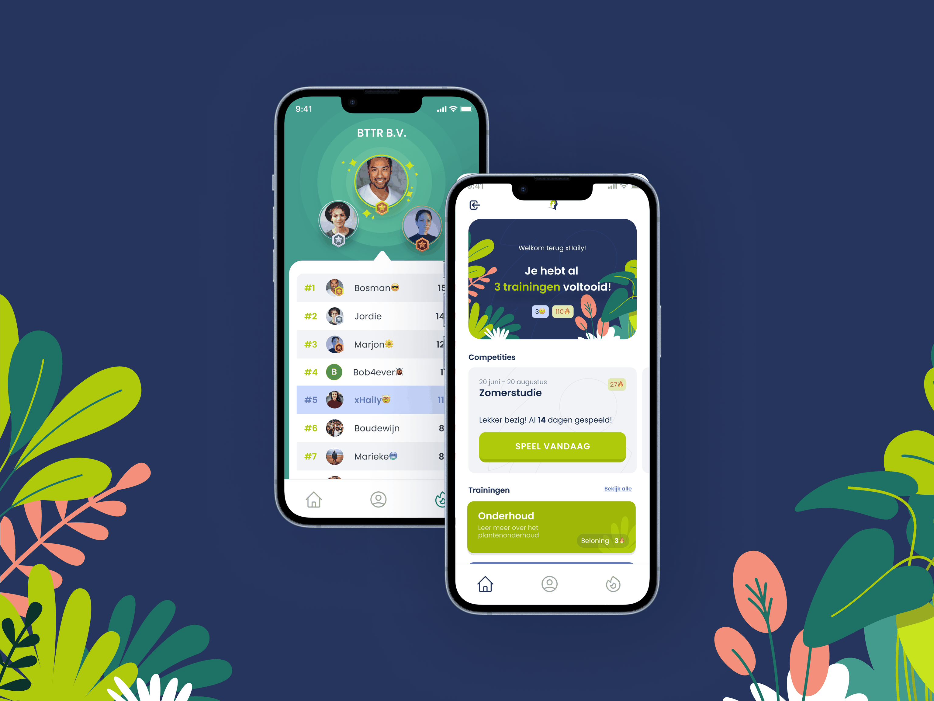 Het onderzoeksteam heeft de behoeften van hoveniers en groenvoorzieners omgezet in concrete functionaliteiten van de Plantenkennistrainer door middel van uitgebreide gebruikersinterviews, surveys en observaties. Vervolgens zijn er service blueprints gemaakt om alle gebruikers touchpoints en behoeften in kaart te brengen. Onze designers hebben deze inzichten en touchpoints samengebracht in een gebruiksvriendelijke applicatie die motiveert en inspireert. Op deze manier bepalen we menustructuren en maken we keuzes voor kleuren, typografie, illustraties en tone-of-voice die aansluit bij de doelgroep. Op deze manier is de optimale gebruikerservaring gecreëerd.