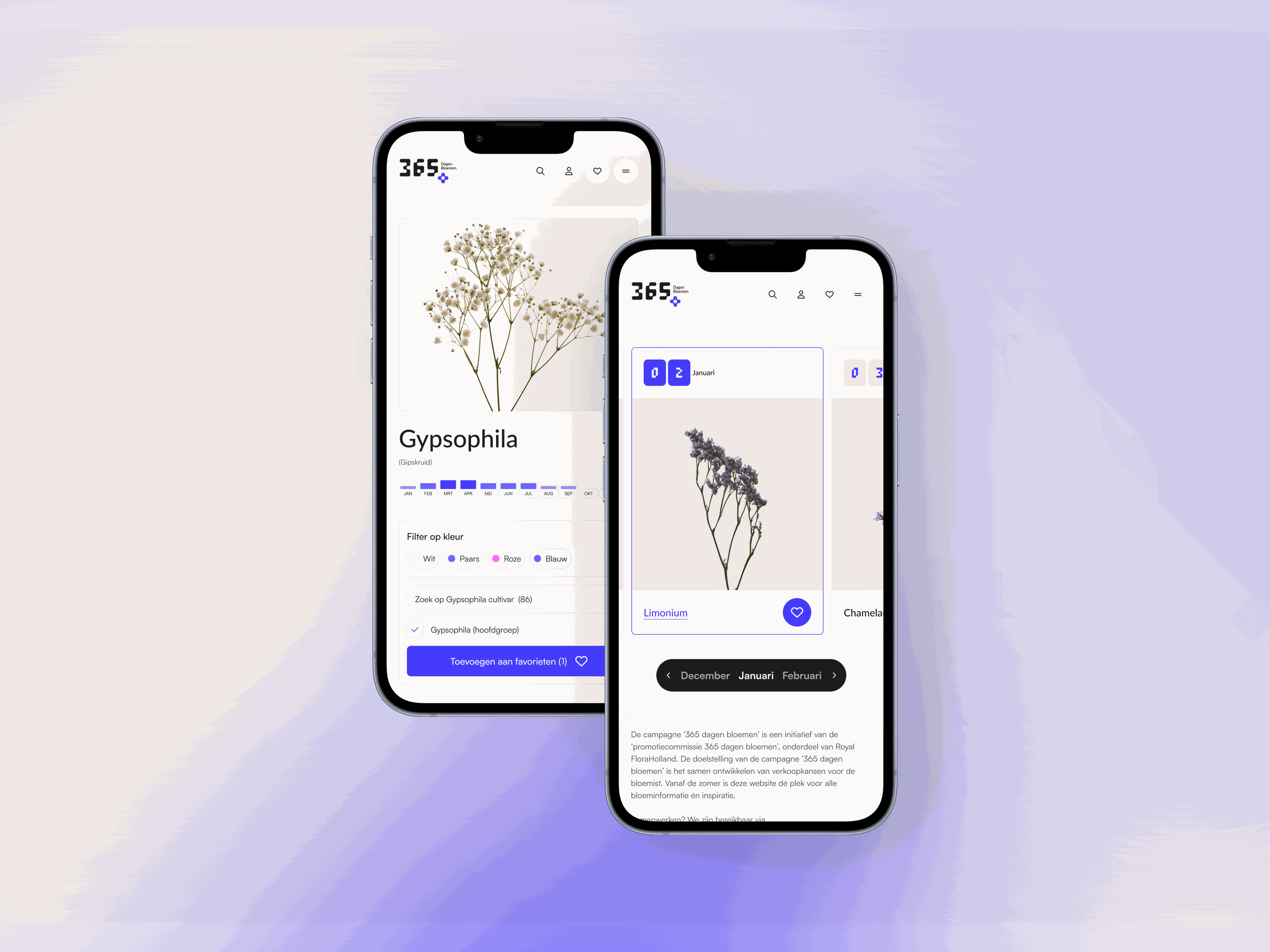 Onze aanpak voor het digitale platform van Royal FloraHolland draaide om het matchen van beschikbare seizoensbloemen met de promotie. Dit omvat het aanbod van meer dan 1.800 kwekers uit 15 landen, met ruim 150 verschillende bloemen die het hele jaar door worden gepromoot op basis van beschikbaarheidsgegevens. De kalender aanpak is door BTTR geïmplementeerd in diverse uitingen, waaronder het platform 365dagenbloemen.nl. Dit fungeert als een informatieve en inspirerende gids voor bloemisten, die zo worden aangemoedigd om bloemen bij de groothandel te bestellen en hun assortiment te vernieuwen, waardoor ze hun klanten kunnen verrassen.